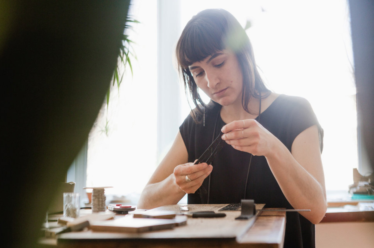 Soutenu par le Conseil des arts du Québec, son travail a fait l’objet de nombreuses expositions au Canada et à l’étranger, notamment à la NYC Jewelry Week (2022, 2023), à Frame Munich (2023) et à la Biennale Révélations à Paris (2023) en collaboration avec la Galerie montréalaise Noel Guyomarc’h, mais également au Museum of Arts and Design de New York (2022) et à la galerie Tincal Lab de Porto, au Portugal (2021). Son travail voyage actuellement en Finlande pour être exposé au Finnish Forest Museum Lusto de Punkaharju (2024) ainsi qu’au Musée d’art de Oulu (2025). Elle est récipiendaire du Prix Jean-Cartier pour la relève (2018) décerné par le Conseil des métiers d’art du Québec et était récemment finaliste pour le Prix François-Houdé (2023) offert par la Ville de Montréal. Ses recherches actuelles portent sur les assemblages géométriques et leur potentiel à illustrer des thèmes sensibles de manière évocatrice et poétique. À partir d’une étude des formes élémentaires, elle développe un lexique visuel lui permettant d’approfondir des thématiques de l’expérience humaine. Elle s’intéresse particulièrement aux dynamiques relationnelles et à la nature complexe des liens communs. Guidée par une esthétique de l’équilibre, elle manie la ligne avec sensibilité pour en construire des métaphores géométriques qui traitent de connexion, d’appartenance, d’héritage et de transformation.