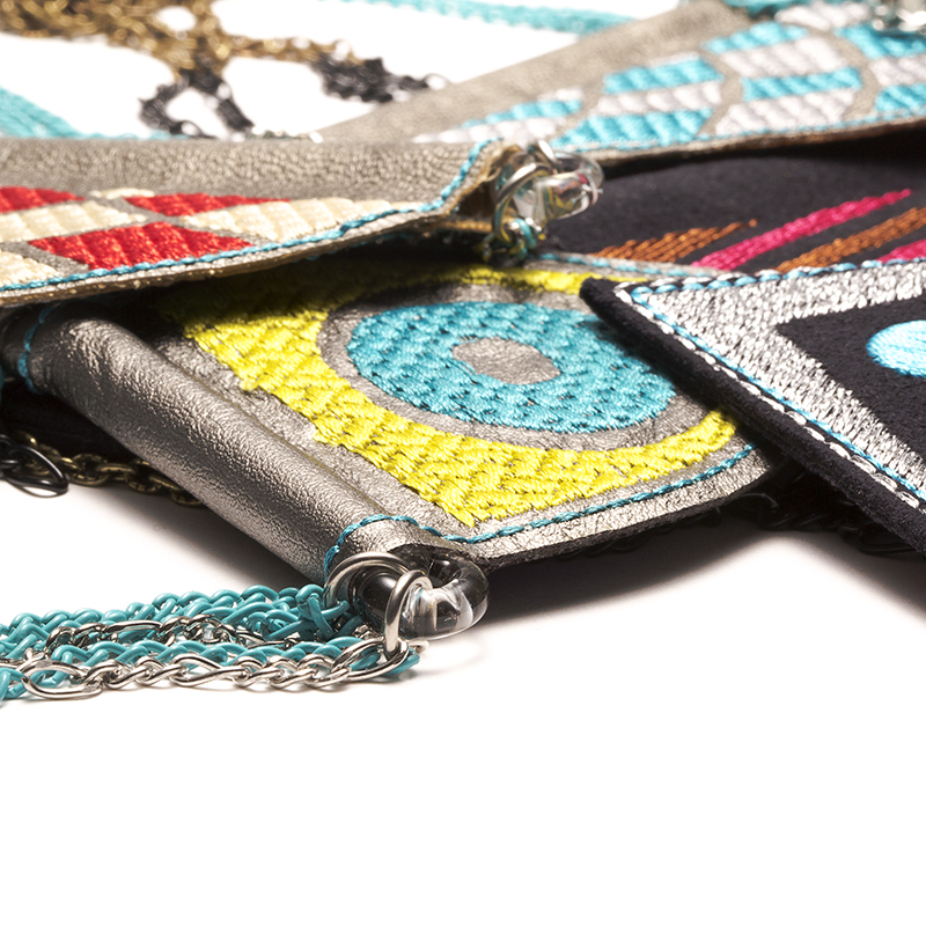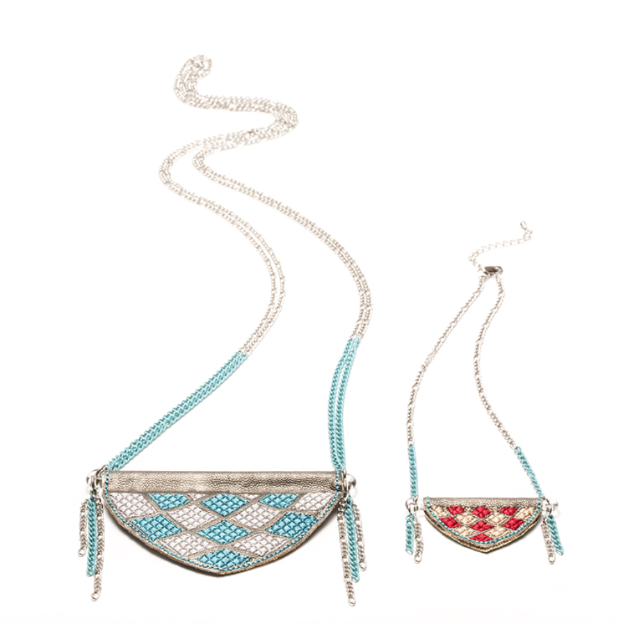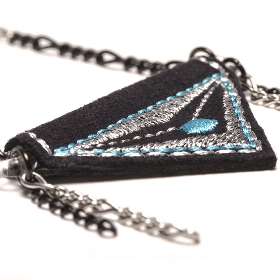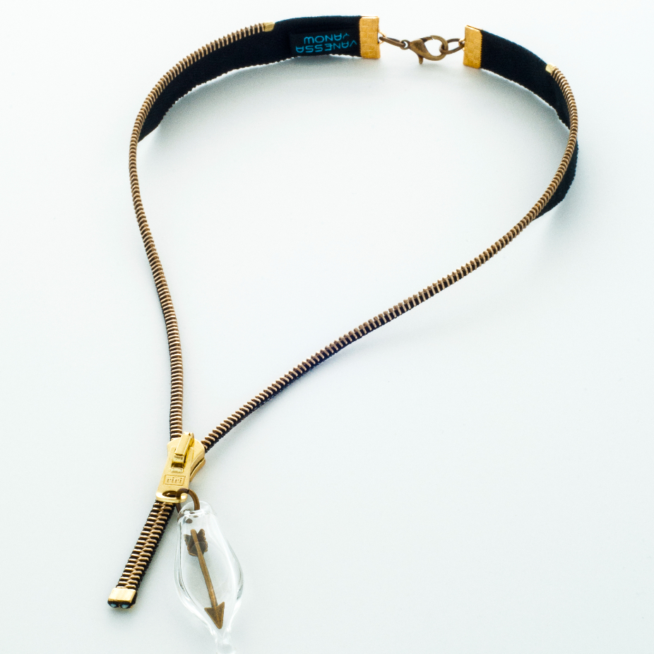 Œuvres d’expression, installations, bijoux et accessoires. Bijoux fermetures éclair avec pendentif en verre.