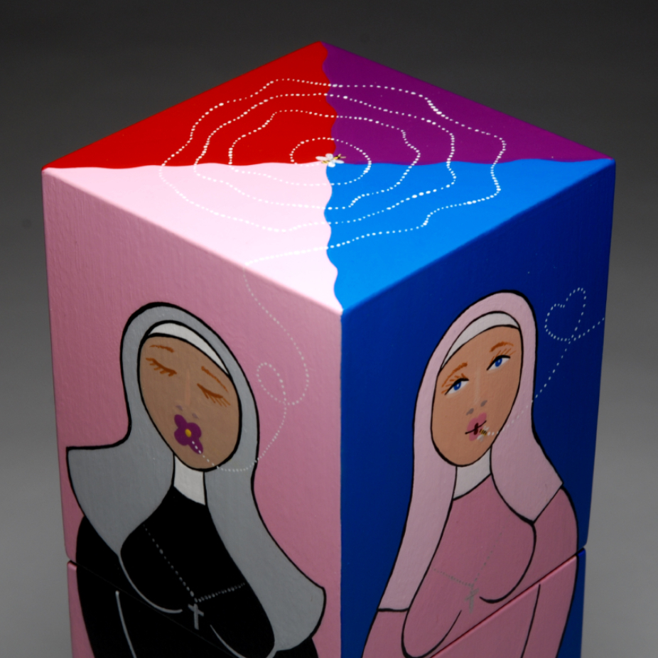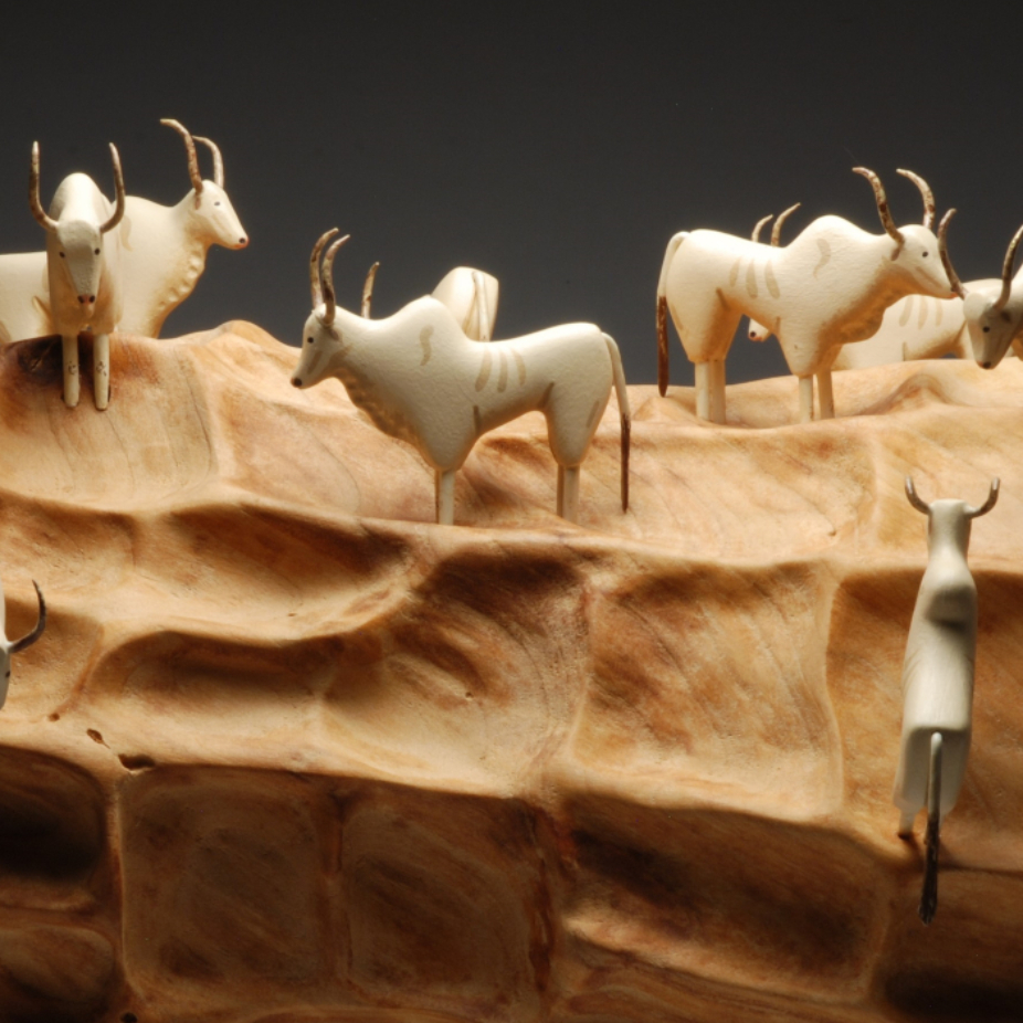 Le collectif Viatour-Berthiaume a orienté sa pratique de la pièce unique vers la sculpture sur bois depuis plus de 25 ans. Diplômés de l’Université Concordia en arts visuels, Marie-Annick Viatour et Gaétan Berthiaume, animés par une passion commune du travail du bois, unissent très tôt leurs forces complémentaires pour travailler en duo dans leur atelier de Longueuil. Le duo a participé à plus d’une trentaine d’expositions solos et collectives dont plusieurs ont circulé à travers le Québec. Ses quatre expositions inspirées des textes de Michel Tremblay, Fred Pellerin, Kim Thúy et Boucar Diouf ont battu des records d’assistance et permis d’offrir de nombreuses médiations culturelles jeunesse et grand public. Viatour-Berthiaume travaille avant tout sur de grands corpus de plusieurs œuvres réunies sous une thématique originale. Viatour-Berthiaume est plusieurs fois boursier du Conseil des arts du Canada, du Conseil des arts et des lettres du Québec et du Conseil des arts de Longueuil. En 2016, il reçoit le Prix Ambassadeur, catégorie culture, de la Ville de Longueuil et est l’invité d’honneur du Salon des métiers d’art de Montréal l’année suivante avec son exposition Sous l’écorce des mots de Kim Thúy. Plusieurs de ses corpus sont accompagnés de vidéos ou de courts métrages dont Quand Boucar Diouf s’intègre au bois… et Création à quatre mains qui se mériteront d’être de la programmation du Festival international du film sur l’art de Montréal en 2019 et 2021. Ses œuvres font partie de plusieurs collections privées et publiques dont celles du Musée des métiers d’art du Québec, du Musée POP et de la Ville de Longueuil.